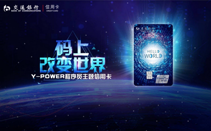 程序员主题卡是由交通银行发行的银联标准人民币个人贷记卡,该卡基于Y-POWER卡加载程序员主题卡面(Hello World卡面)供申请人选择。对于程序猿一族来说,办理这张卡再适合不过了,为什么这么说呢?下面请听小编一一道来吧!