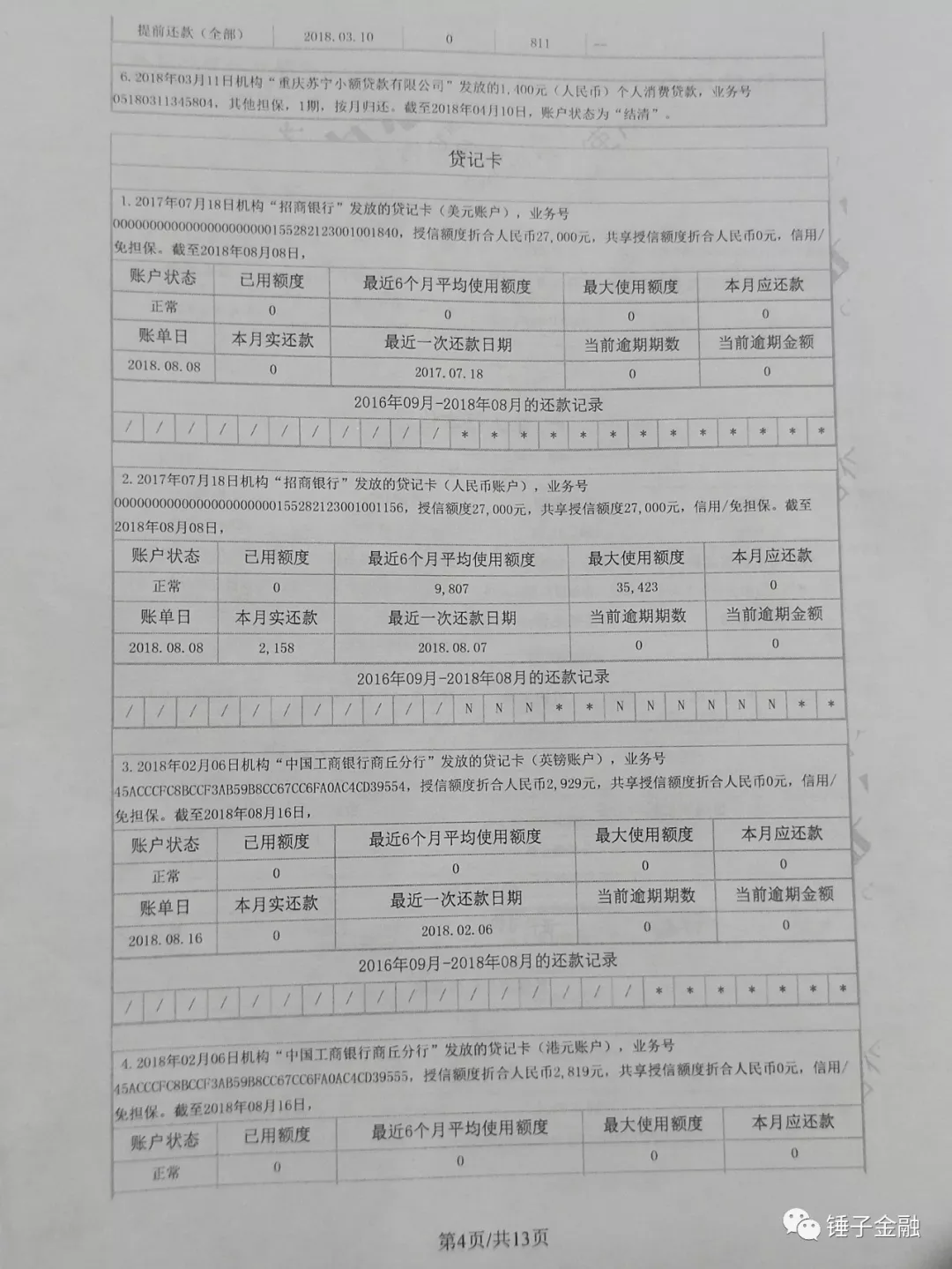 通过这份征信可以看出征信已经很花了,虽然没有逾期,但这么多的查询记录也只下了工行和招行两张卡而已。而且,负债也是相当的高,一度曾达到了100%。