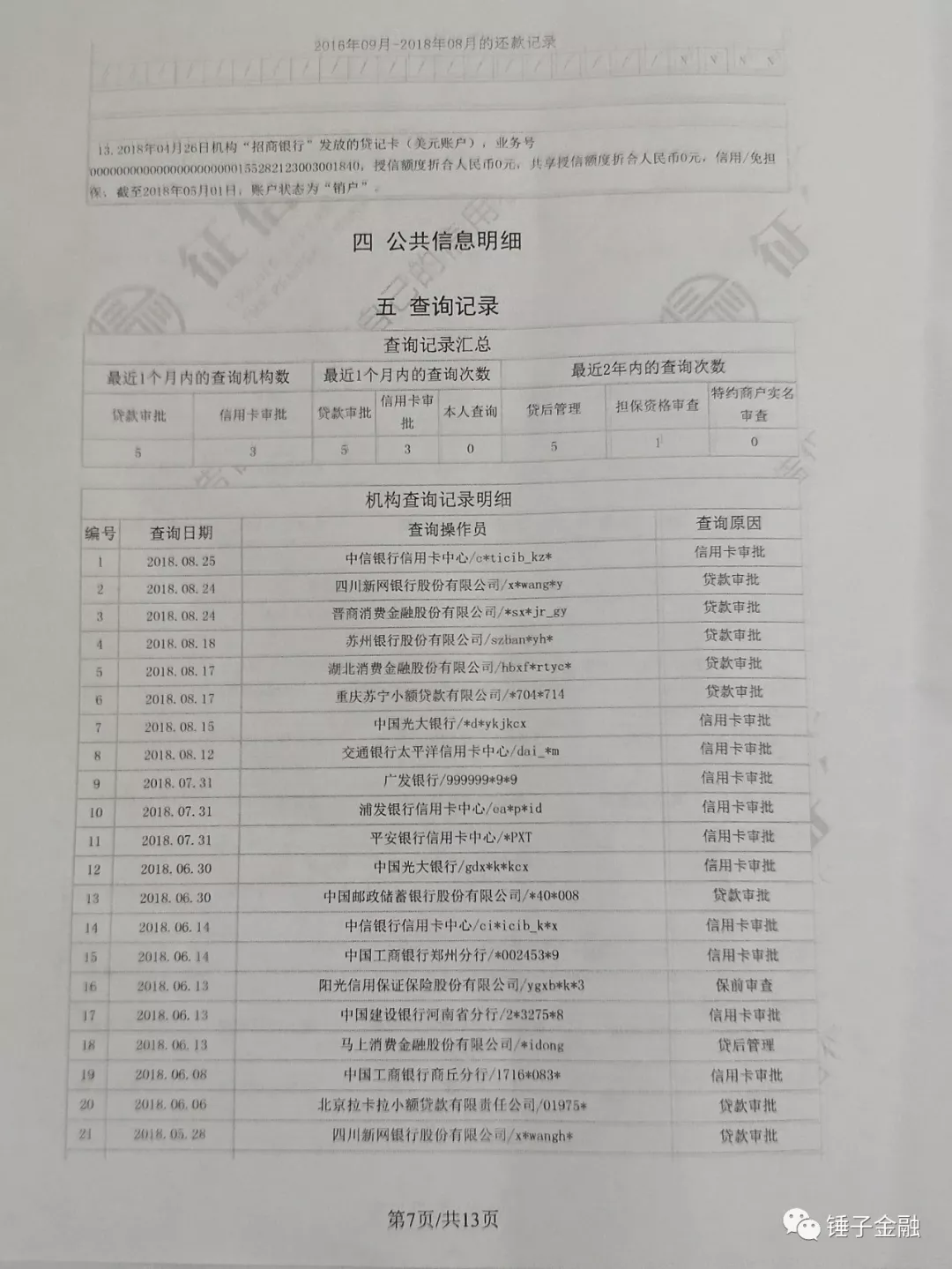 下面小胖就根据一份完整的征信分析一下卡友们是如何把自己的征信给作死的。