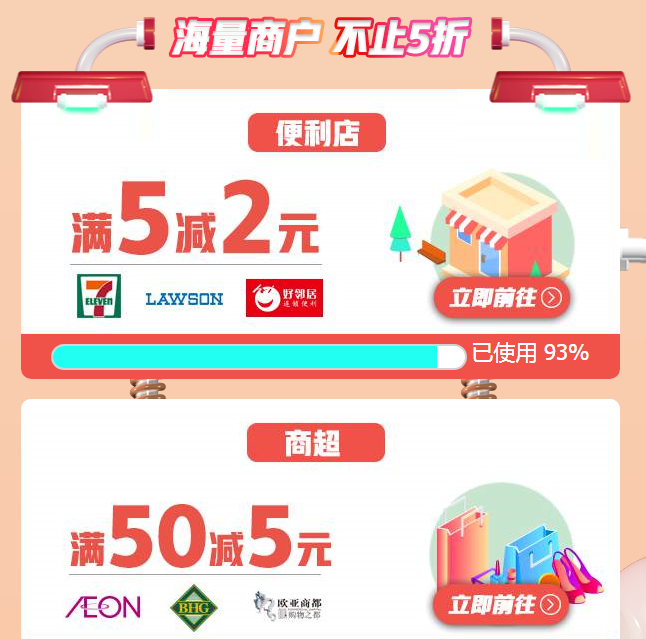 便利店:7-11,罗森,好邻居,物美等满5减2元