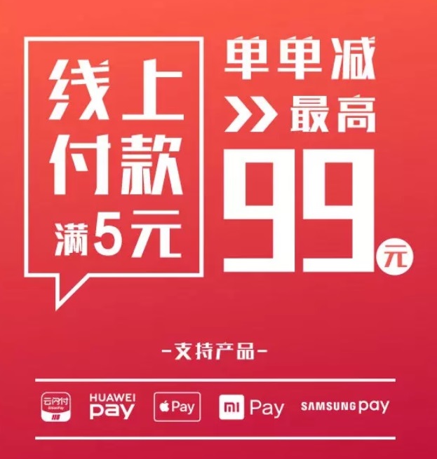 活动期间,用户使用Apple Pay在活动商户付款,满5元享随机立减,最高99元,单卡单用户在所有活动商户最多可享受5次优惠。