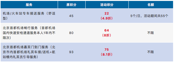 活动期间,客户可以最低4.9折兑换尊享积分多项服务,最低2分起。(活动期间单项服务每人限兑1份。名额有限,赠完即止。)