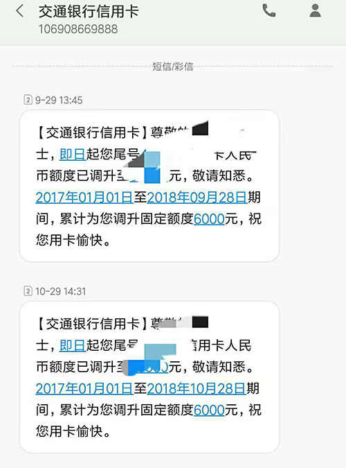 控制好上面四条,基本上还是能赶上半年一次的提额的。嗯,我赶上了,收到了提额的短信哈哈,开心。