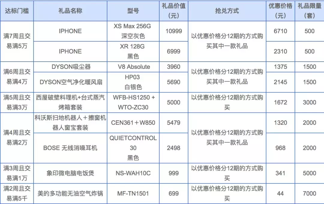 坑点1:所有礼品均限量!且达标后也要强兑!