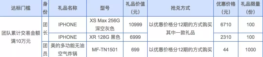 达标优惠购:无论个人还是团队,周刷5笔,达标对应周数可解锁优惠购买礼品权利。
