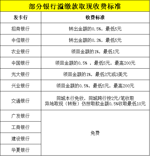 通过网银转账,直接把溢缴款转到同家银行的储蓄卡上,也是免手续费的。