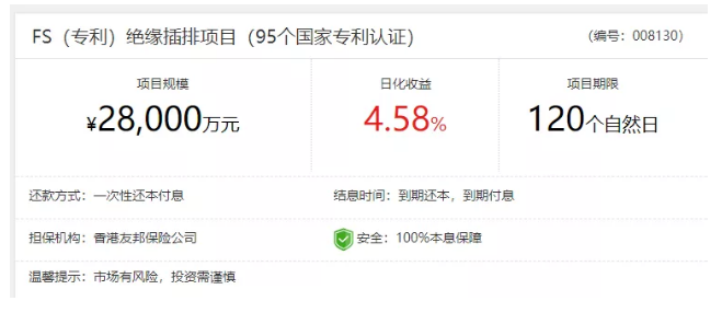 根据平台公布的信息,插座那个项目需要资金2.8亿,120天之后项目就到期了,在120天里,这个项目需要付15.39亿的利息。