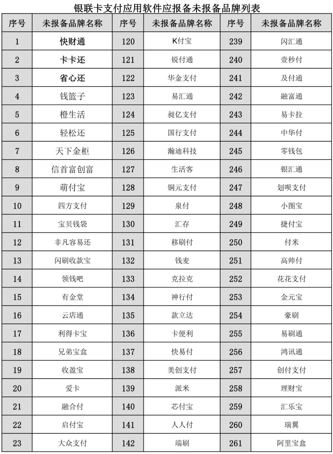 近日中国银联下发了最新版的银联卡支付应用软件未报备品牌黑名单。此次有又有八家上榜,分别是快财通、卡卡还、省心还、钱篮子、橙生活、轻松还、天下金柜、信首富创富,据悉这八款APP均涉及信用卡代还业务。