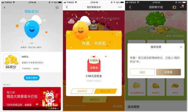 ③路径:招商银行app(非掌上生活)-搜索招财树-招行树计划页面浇水-抽奖-我要抽奖-积分等各种奖励!看你运气了,我是66积分!有人抽到888羊毛。