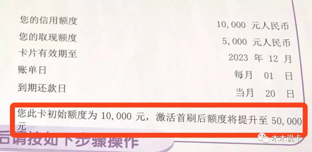 收到卡的朋友,激活首刷后额度就会提升到推荐额度的,比如木木那位朋友,额度直接为5万永久额度了。