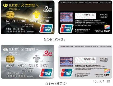 兴业银行信用卡产品,等级自高至低为白金卡标准版、白金卡精英版、金卡和普卡。兴业南航联名卡也是如此,分为四个等级。