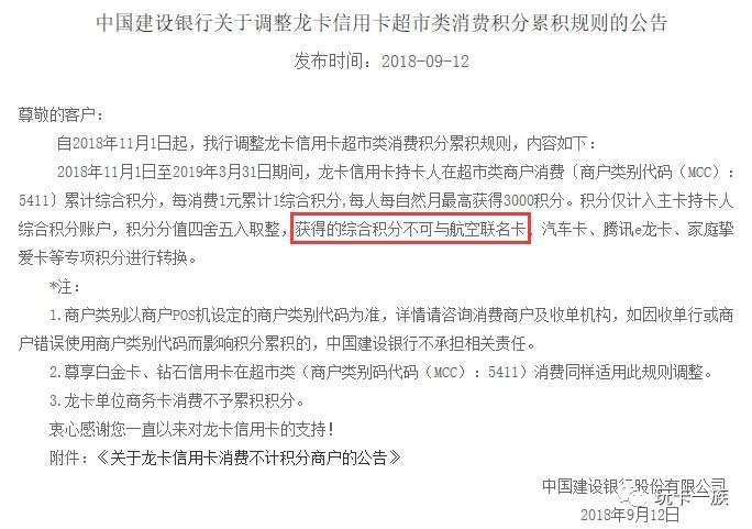 建行南航卡刷部分商户获得积分,是不能转化为南航里程的,如超市类商户消费(5411),每月上限3000积分,但只能累积建行综合积分,不可转换为南航里程,请各位注意,平时超市购物,尽可能避开建行南航卡。