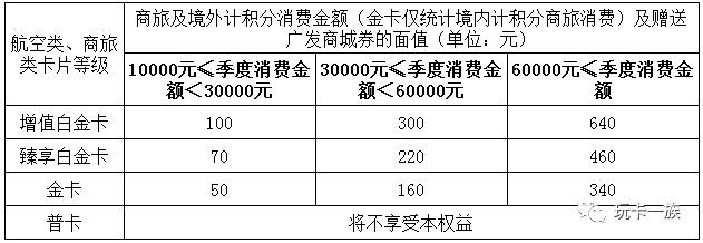 持卡成本是800元刚性年费。但是,虽然取消了商旅双倍里程累积,但是却额外赠送广发商城劵,具体如下表。