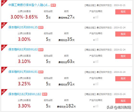 工行在售的保本型理财产品,预期收益率最高可达3.75%