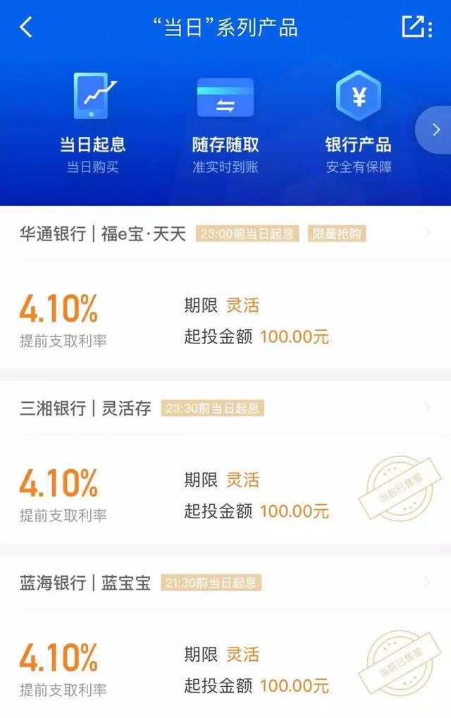 都是当日存进去,当日就生息的存款,选择还是挺多的~