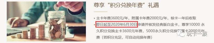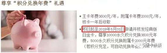 不过,之前的积分兑换年费有一些变化,积分兑换年费的政策是到2019年5月31日。而这一文字表述,引起了不少持卡人的担忧,担心2019年5月31日之后申请的经典白执行刚性年费政策!