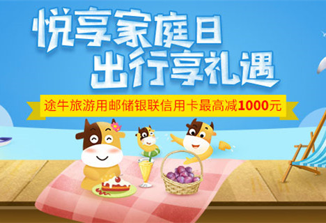 持邮储银联信用卡在途牛APP、门店通过云闪付APP预订指定跟团游、团队游、邮轮、定制游、旅拍游线路,享受以下优惠: