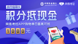 活动内容:活动期间,持卡人通过“网易支付”渠道在网易考拉(APP端、wap端)使用“网易支付”绑定的农行信用卡支付订单时,可使用积分抵扣功能。