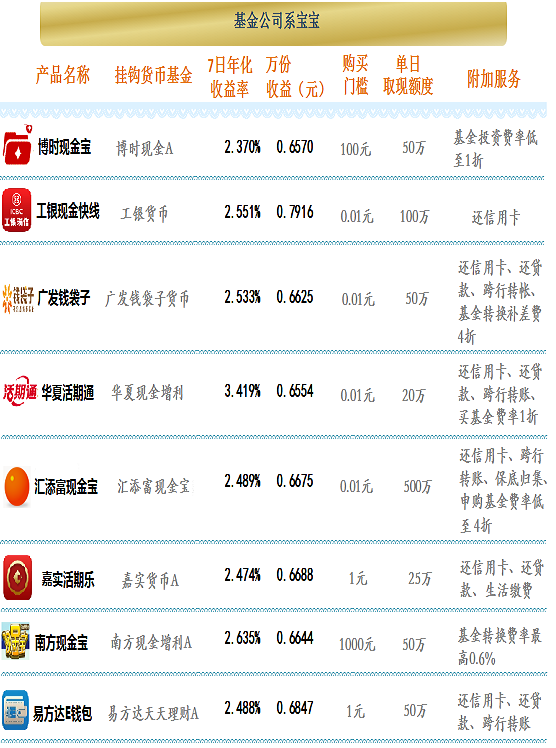 华夏现金增利证券投资基金是华夏基金发行的一个货币型的基金理财产品。投资范围包括剩余期限在397天以内的国债、政策性金融债和AAA级企业债等短期债券,期限在1年以内的债券回购和中央银行票据,以及中国证监会允许基金投资的其他金融工具。6月21日,华夏现金增利7日年化收益为3.419%,领衔各宝宝类理财产品。