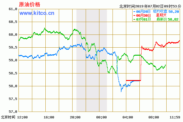 周一(7月1日)收涨0.62美元,或1.1%,报59.09美元/桶。布伦特原油9月期货周一收涨0.32美元,或0.5%,65.06美元/桶。