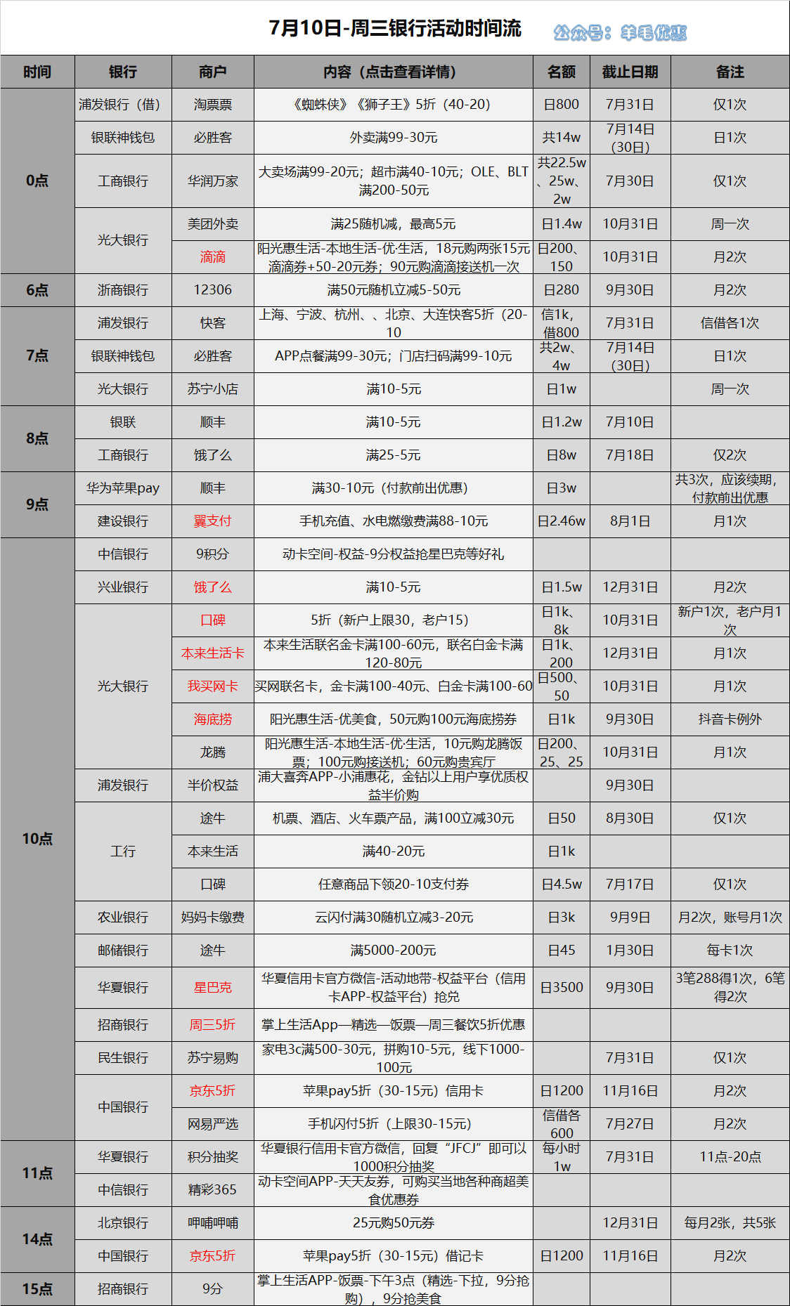 建行翼支付充值缴费;光大海底捞抢券、本来生活卡、我买网卡满减;兴业饿了么