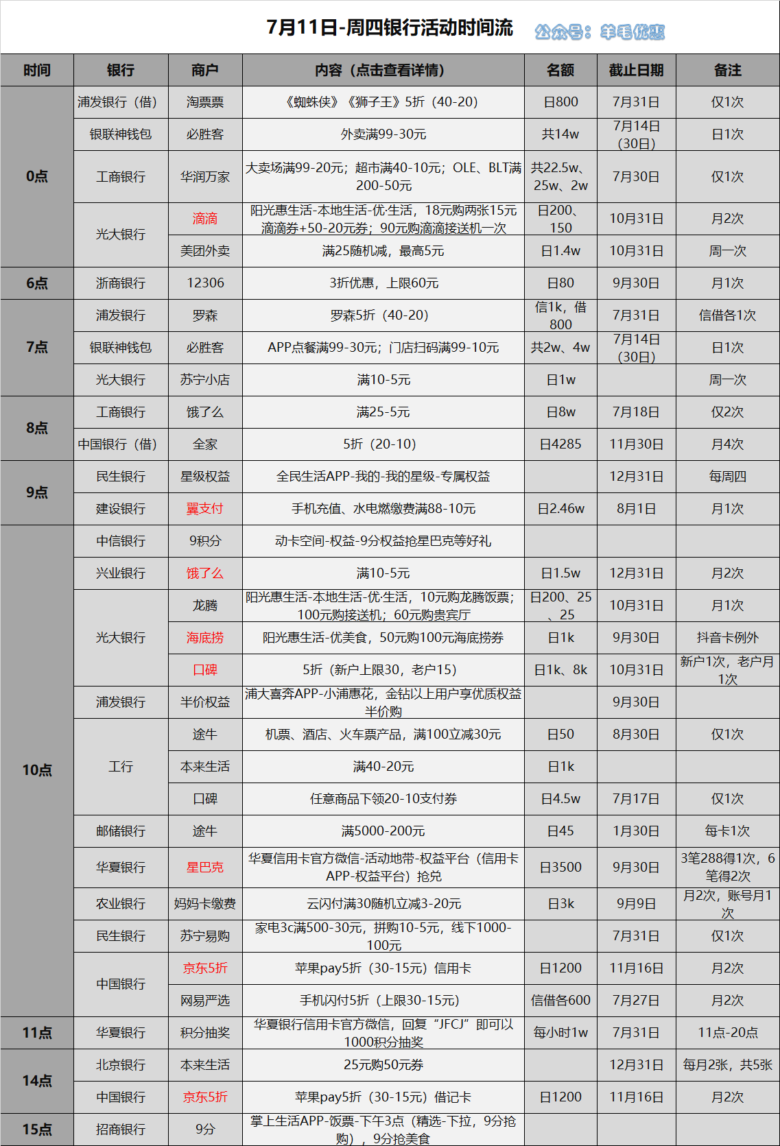 兴动6积分续期;华夏精英排位赛,每日88刷;华为pay顺丰;浦发积分乐兑;兴业饿了么;民生星级权益