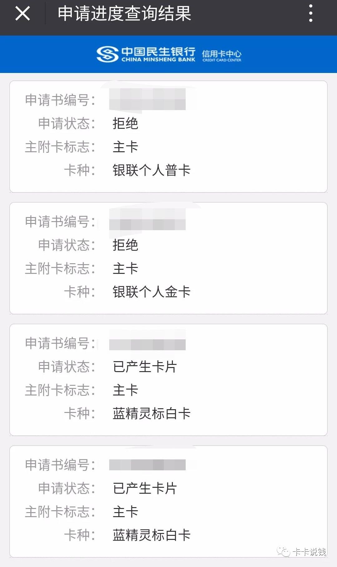 从群里反馈结果来看,之前申请普卡被拒绝的,申请蓝精灵竟然通过了: