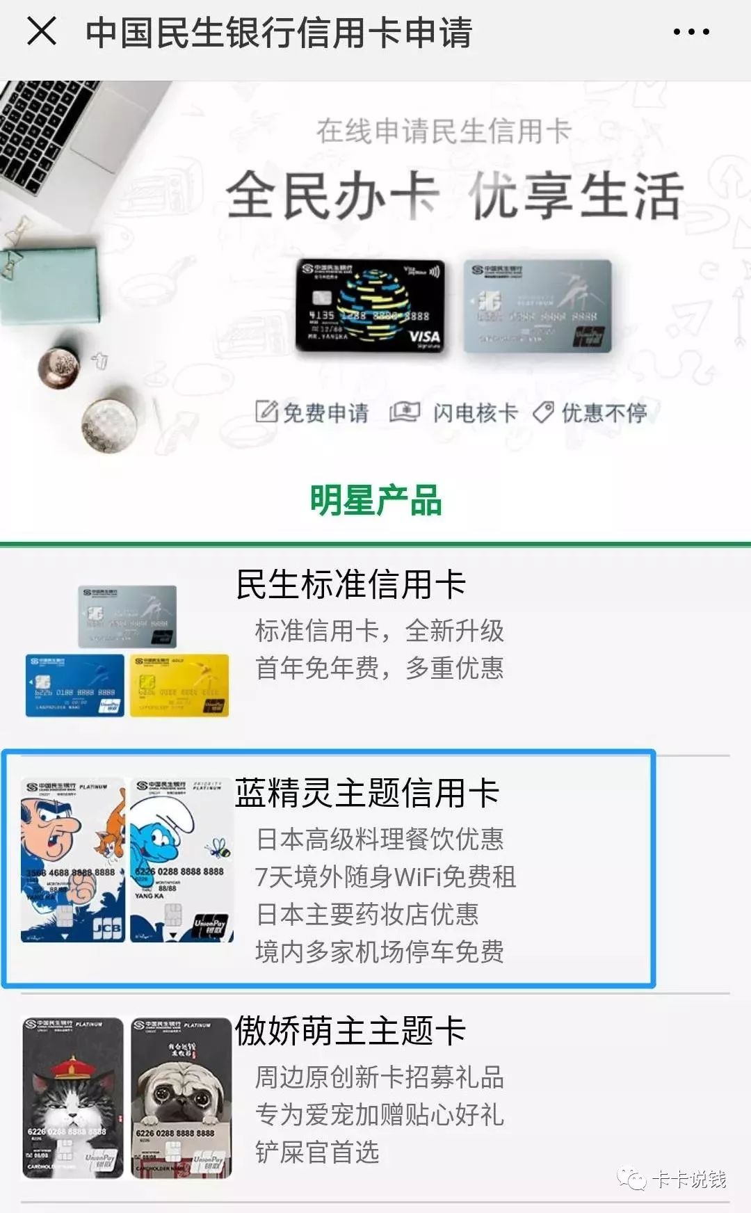 就是下面蓝色框里面那个,“蓝精灵主题信用卡”。