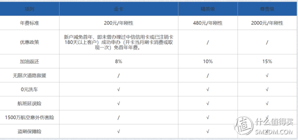 可以看到,性价比最高的为白金卡精英版,虽然加油收益少了40元,不过多出了整整12次洗车,且航空延误险的等级更高,因为本文只讨论汽车相关,所以这部分不做讨论,有兴趣的同学可以自行去官网了解。
