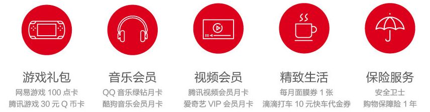 除了兑换上面的“青春娱乐套餐”,80权益金还可以兑换游戏礼包或音乐会员或视频会员或实物礼品或保险,见下图: