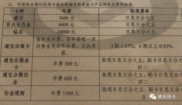 民生高端卡胜在额度,精英白、豪华白、百夫长、钻石卡、黑金卡都有明确的起步额度,所以对于额度有要求的都会奔向民生银行。年费也是实打实的,现在民生百夫长有优质单位团办年费6折活动。