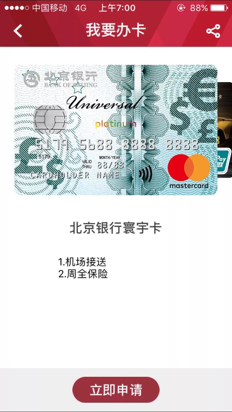 北京银行给我的感觉超棒,虽然卡妞只有不到两万的额度,但是我也是白金客户。