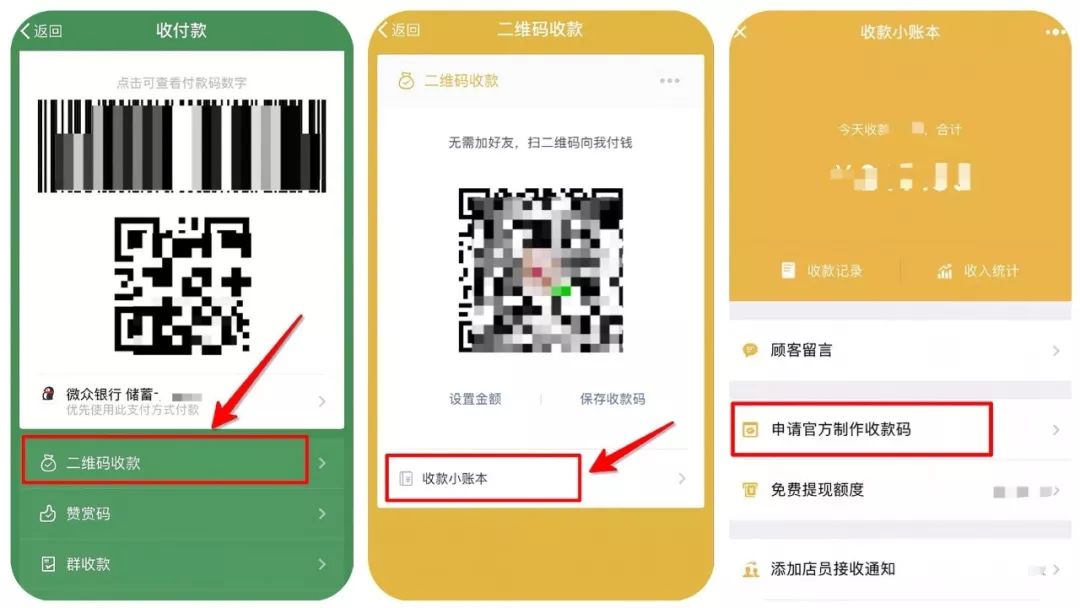 大家可以在微信的收付款里找到【收款小账本】,然后点击进入申请官方的收款码。
