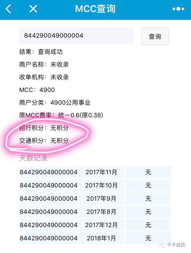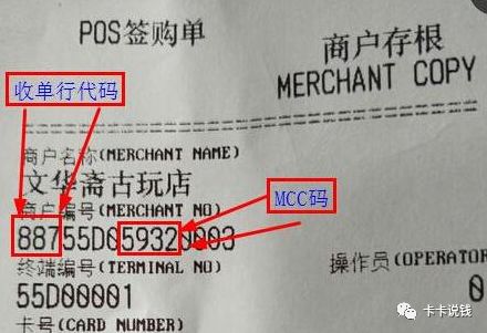 如下图商户编码:88755D059320003种的4位消费类型数字“5932”就是MCC码,决定着这一笔消费在您的发卡行,是否享有积分。