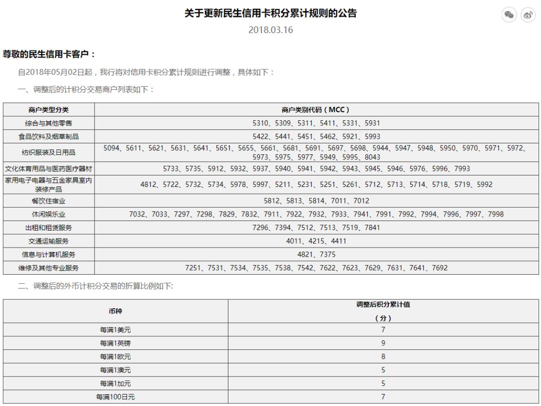 民生银行也更新了不计积分类型,2018年5月2号开始执行。