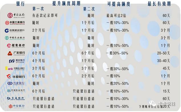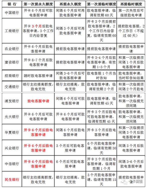 关于提额时间表,不管是玩卡小白,还是专业人士,这个是你必须要掌握的内容,首先要懂得每家银行提额的规律和时间,这才是正确的姿势,对于新卡提固额,每家银行基本都需要用够半年时间以上,临额时间更快一点。但如果是老卡的话,一般以3个月为周期。