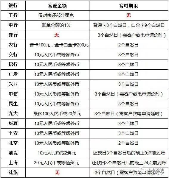 关于容时差,这里大家记住两点,一是每期账单你只要还够最低,是不影响征信的,关于这点,有很多小白还不知道; 二是每家银行基本都有容时差,只要你在容时差的范围内还够最低,对征信是没有影响的。举例说明,如你招商的最后还款日是每个月25号,容时差为3天,只要你每个月28号之前还够最低,就不算逾期,也不会产生逾期,当然这点,有时候确实手头紧张或忘记可以偶尔一两次,但是如果你经常这样就要小心了,建议大家,账单出来之后就开始还款,不要等到最后还款日前一两天才想起来。