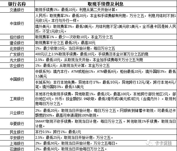 关于各行取现的手续费和利息,这个并非一成不变,有的信息更变,大家以最新的为准。