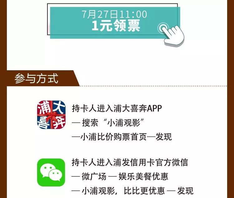 3.活动一共计27个活动日,每个活动日上午10点开始,限前5,000张影票;活动二共计8个活动日,每个活动日上午10点开始,限前8888张影票。