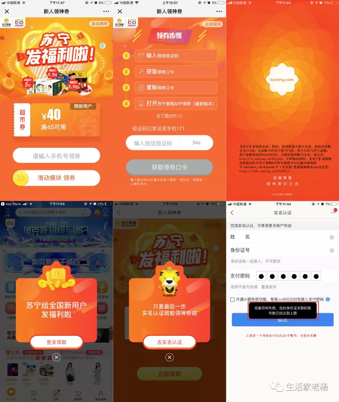 1、原则上没有参加苏宁任何活动的用户可以绑定5个账号