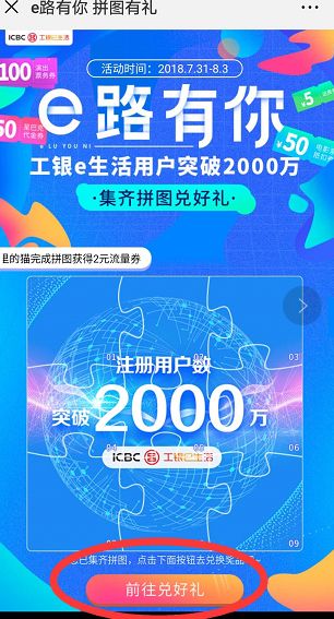 活动路径:工银信用卡微讯-》我要福利-》e路有你;