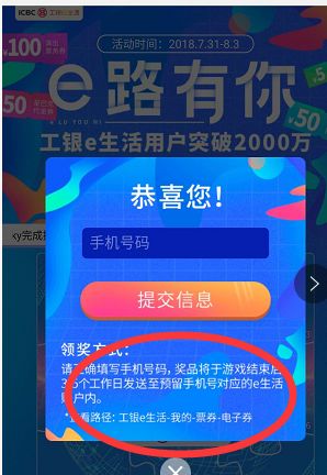 注意上图圈出来的文文字,领奖手机号一定要填写注册工银e生活时候的手机号哦,否则就是白忙活。