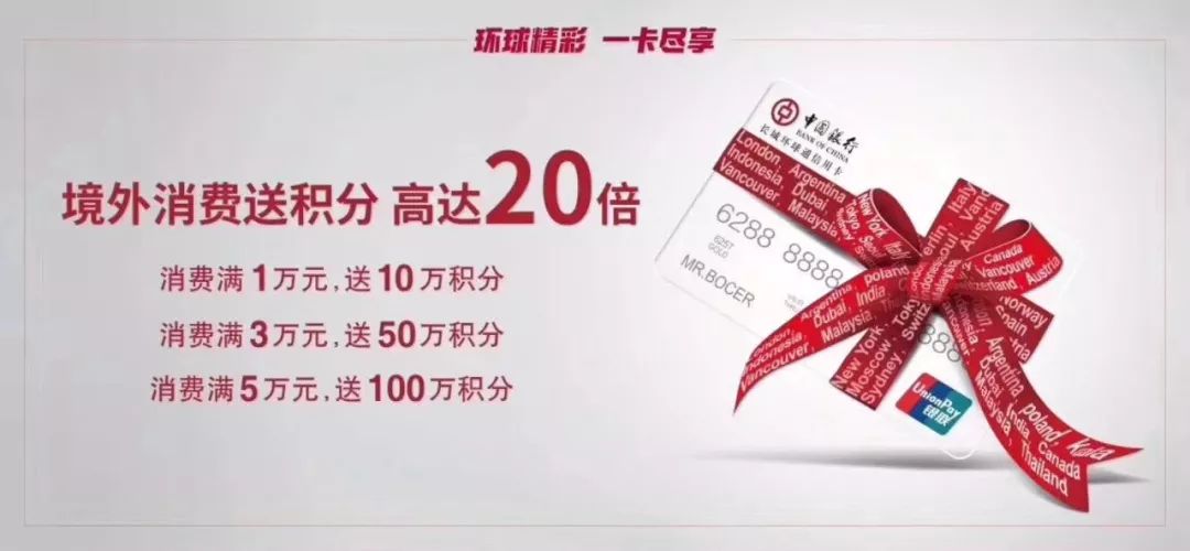 中行祭出了去年就使过的“大招”:境外消费满额最高送100万积分。