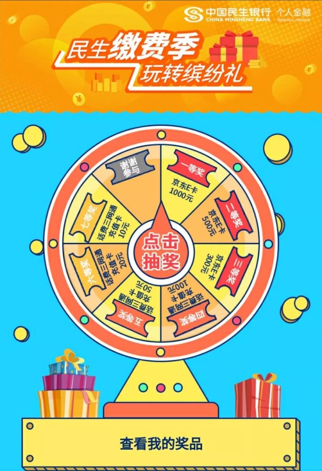 3、客户登录民生银行手机银行-缴费中心-校园代收/企业代收/其他代收/党费代收,成功完成缴费且缴费金额大于100元,即可受邀参加大转盘抽奖活动。
