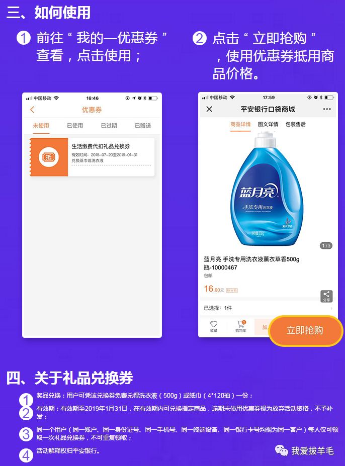 用户可凭该礼品兑换券免费兑得洗衣液(500g)或纸中(4*120抽)一份,二选其一