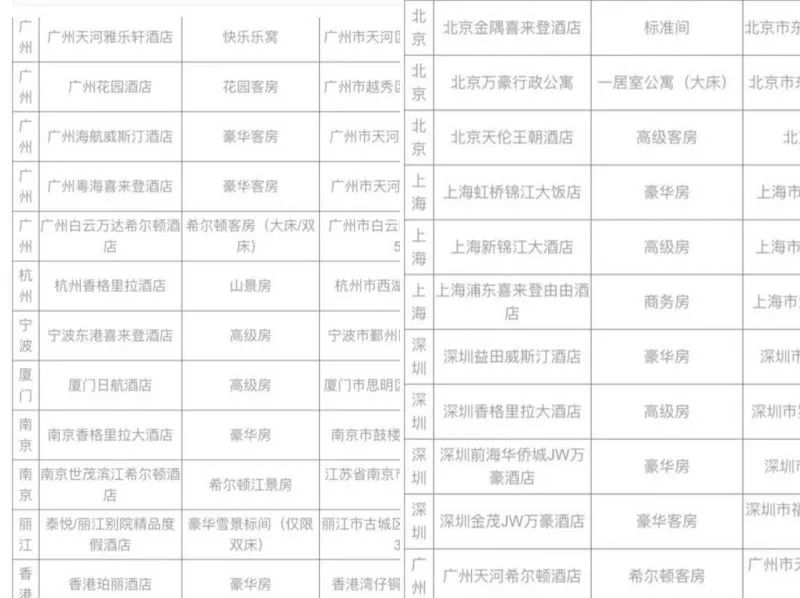 以下是享受权益的部分酒店,基本相当于五折拿下。