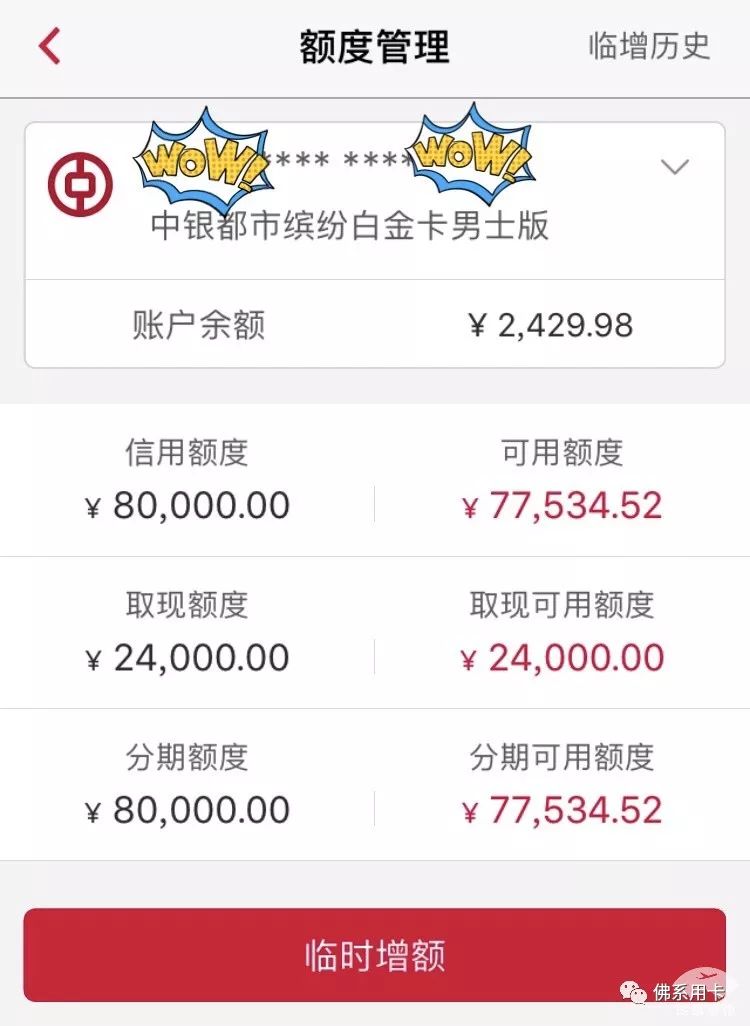 楼主的此次成功提额,依的还是他的收入,除了出入之外去中行存款达标申请提额也是一种有效方式。这里一定要找靠谱的理财经理....不负责的理财经理可能看你存了砖之后,后面对你爱理不理了,这都有可能的,所以在搬砖之前找靠谱网点靠谱理财经理,提额成功率会高不少。