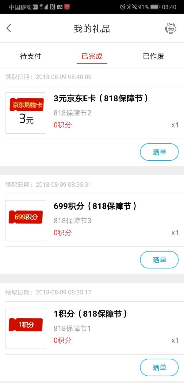 9积分兑换保障可开一个宝箱,可开到一项保障或者3元京东E卡。