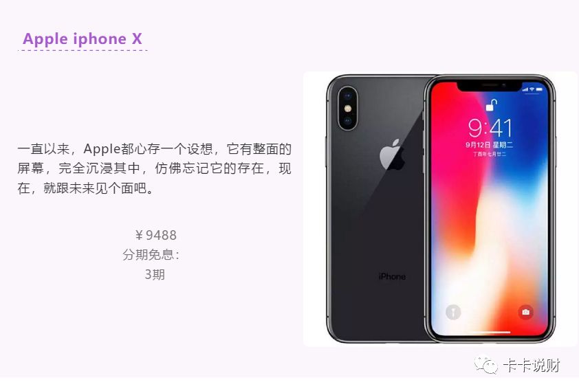 就拿公众号主推的产品之一——iPhone X来看,9488的价格就高出京东一大截。