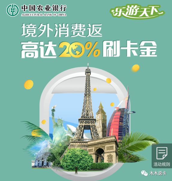 活动抽奖路径,关注“农业银行信用卡”公众号,点击下方菜单【优惠/分期】-【乐游天下】-【境外刷卡金】,抽到200美金的返现力度已经很大了...